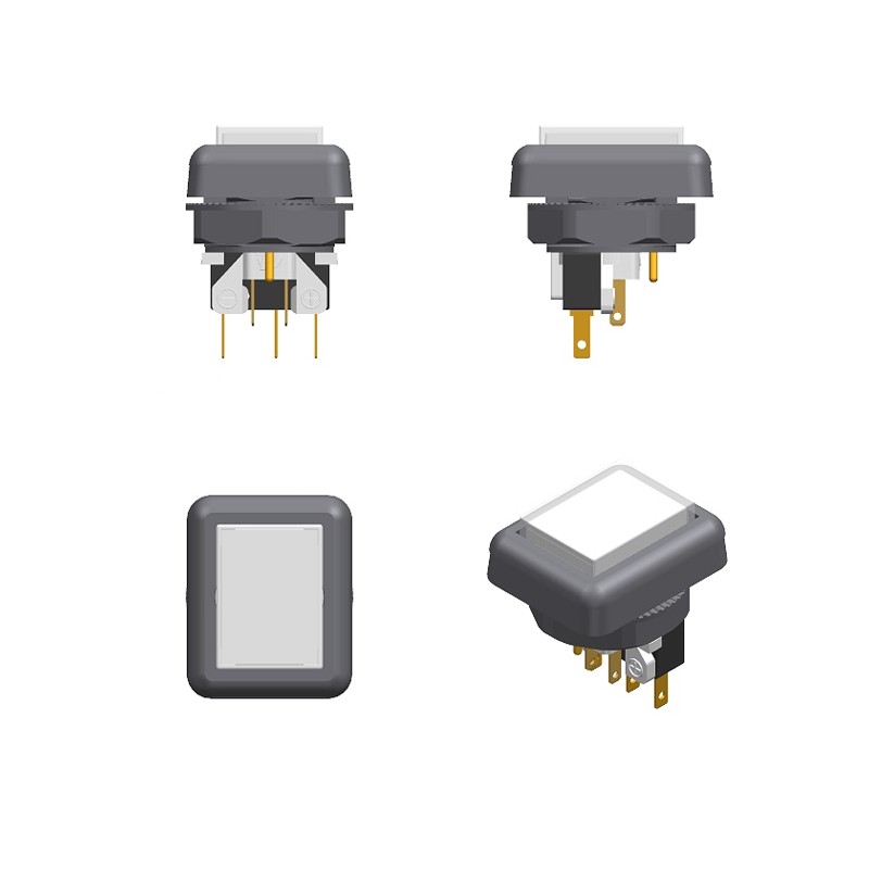 Spielautomaten/Gaming-Automaten, bei denen ein rechteckiger Drucktaster in mittlerer Subminiatur-Größe benötigt wird.