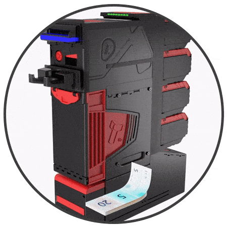FEATURES ✓ Modularer Aufbau, recyceln Sie bis zu 420 Scheine mit 5 Stückelungen ✓ Schnellere Zahlungsabwicklung, Optimierung der Transaktionszeiten ✓ Außergewöhnliche Erstannahme und Ablehnung von fleckigen Banknoten in Straßenqualität ✓ Integrierte Diagnose zur internen Fehlerbehebung. Für den Zugriff auf alle Banknoten Zuordnung sind keine Tools erforderlich ✓ Optionale 300-Banknoten-Nachfüllkassette zum automatischen Floaten aller Recycling-Module oder zur Verwendung als Einzelwert-Recycler mit hohem Volumen