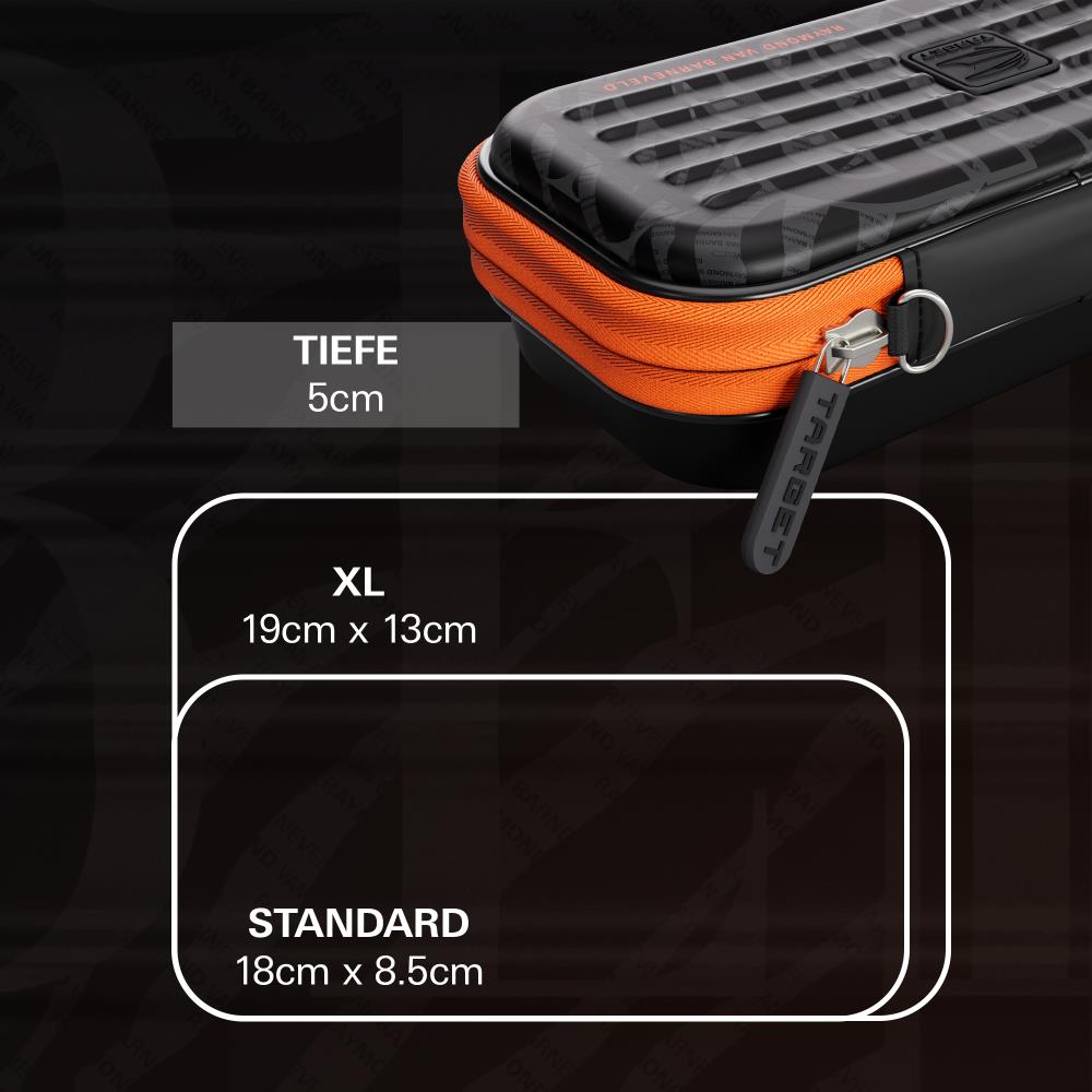 Die monochrome Basis des Wallets wird von einem markanten orangenen Rand eingerahmt – eine Hommage an Barneys niederländische Herkunft und seine unverwechselbare Präsenz an der Oche. Sein Name und seine Signatur sind dezent in das Design eingeprägt und verleihen dem Etui einen eleganten, zeitlosen Look, der Professionalität und Klasse widerspiegelt.