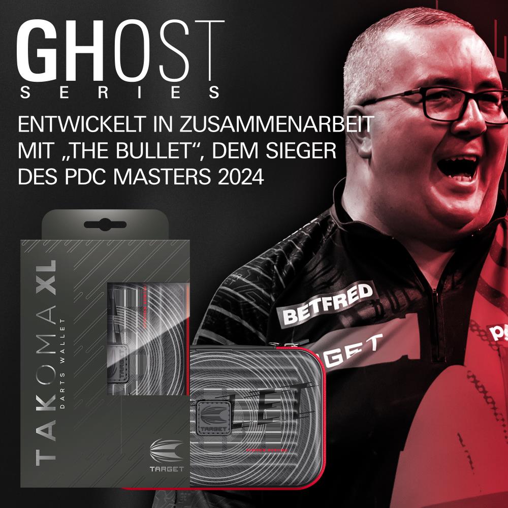 Zeig deine Unterstützung für Stephen Bunting mit dem Ghost Series Takoma XL Wallet, das „The Bullet“ und seinen dynamischen Stil an der Oche feiert. Als ehemaliger BDO-Weltmeister hat Stephen sich mit seinem geschmeidigen Wurf und seiner unerschütterlichen Entschlossenheit zu einer der bekanntesten und meistbewunderten Persönlichkeiten im Dartsport entwickelt.