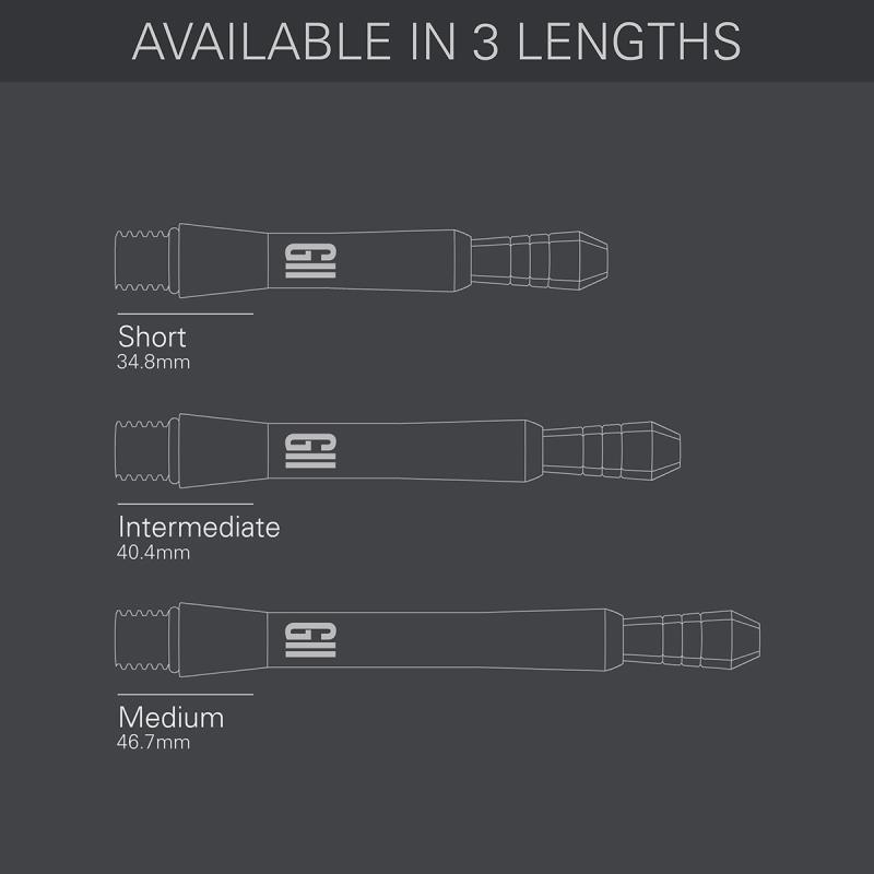 Die G11 Titanium-Schäfte wurden in Verbindung mit der Raw Power Generation 11 Dart-Reihe entwickelt und nach Phil „The Power“ Taylors Spielspezifikation gefertigt. Sie sind aus Titan gefertigt, um bei intensivem Spiel mehr Ausdauer und Balance zu gewährleisten.