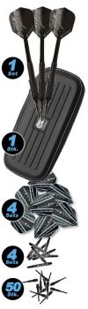 Takoma Taschen werden aus hartem EVA Kunststoff gefertigt welcher einen optimalen Schutz vor Außeneinwirkungen sicherstellt. Im Inneren werden die Pfeile zusätzlich durch den Samtbezug sowie einem elastischen Band geschützt. Die Tasche bietet Platz für 3 Darts mit montierten Flights sowie 2 zusätzlichen Fächer für Zubehör (mit Reißverschluss).