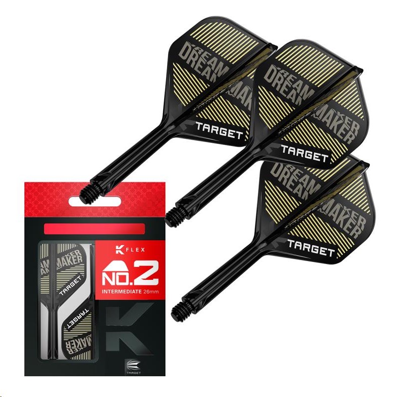 Dieses Player-Edition K-Flex Flight- und Schaftsystem wurde in exklusiver Zusammenarbeit mit dem talentierten Dimitri Van den Bergh entwickelt, einem PDC World Matchplay Champion, der für seinen elektrisierenden Spielstil und sein Charisma bekannt ist. Es trägt seinen Spitznamen „Dreammaker“ in auffälligen Gelb- und Goldtönen.