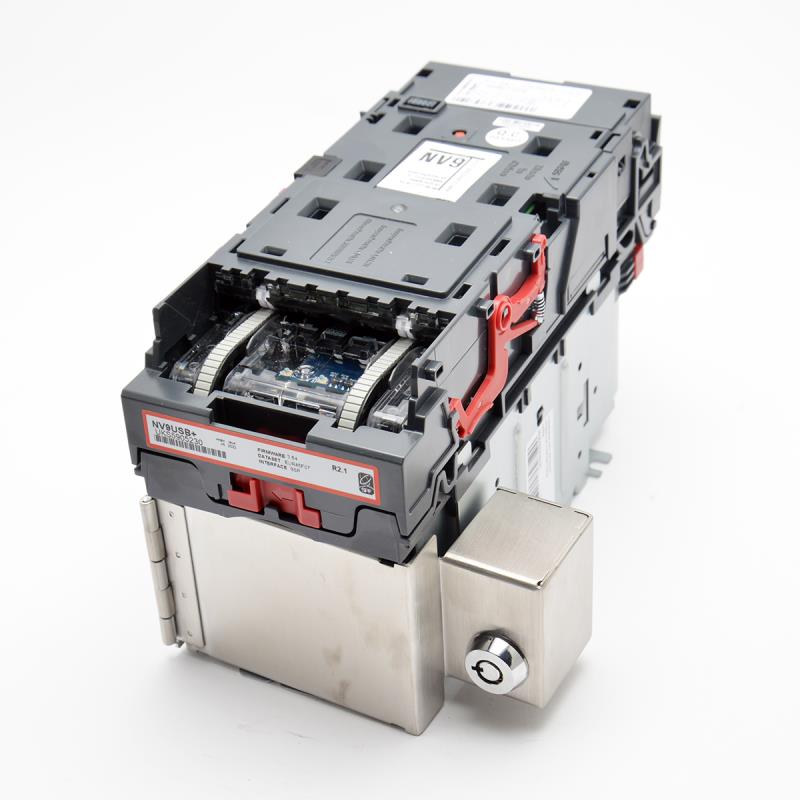 NV9plus bill validator with integrated stacker for 300 notes lockable for worldwide use.