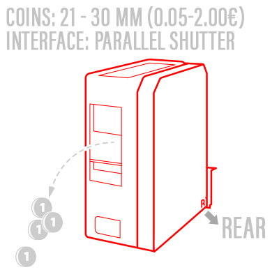 As soon as the hopper starts paying coins, the shutter opens, and closes again when a payment is finished.