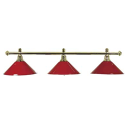 Decorative lamp with three raditionally styled shades. Simple yet classy with a gold hanging bar. The three light adds a warm glow to any table. Ensures ideal lighting conditions, illuminates the playing surface without disturbing the game by stray light. Funnel shape ensures optimum table illumination Interior coating reflective white for incandescent lamps and LED 230 VAC with E 27 thread, chain suspension.