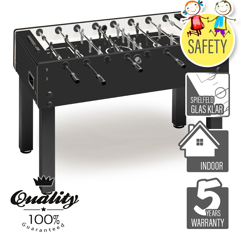 The Black Evolution is a high-quality football table made of easy-care materials. The very stable construction due to the modern MDF * boards, is an ideal indoor kicker and a companion for many years. It is an ideal table for the player with high demands, also suitable for clubs, youth organizations etc.